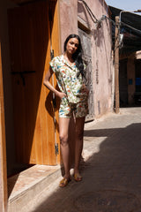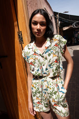 The pair of shorts one would dream of! Embodying comfort and breathability with an instantly loveable print, these shorts are made high-waisted with a straight cut silhouette to flatter instantly. Finished with drawstrings dressed with wooden beads, slip on a pair of sandals and take on the day. Best paired with our Bird Park Shirt.
