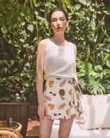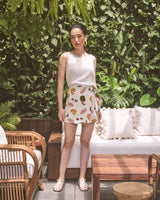 The Fruit Stall Shorts is a high-waisted shorts with a fit-and-flare silhouette, a front overlap skirt panel and a self-tie decorative belt. Made from 95% Combed Cotton and 5% Spandex for comfort and shape retention.