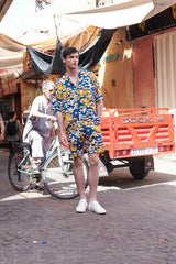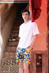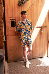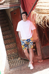 The MB7 Shorts is a pair of printed chino shorts featuring a relaxed fit from thighs to hem, a seamed waist, belt loops, side pockets and topstitch detailing. Interior waist piping. Made from 100% Combed Cotton Twill for a structural but smooth fit.