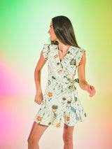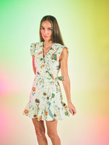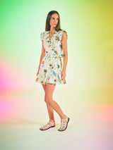 One of our favourite artworks is now issued in a crowd-favourite style! Easy on the eyes, this intricate print of flowers and birds is complemented with tailored ruffle details, finished with hand-beaded tassels on the sash. A wrapdress designed to effortlessly keep up with you from day to night.