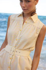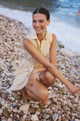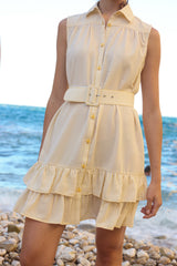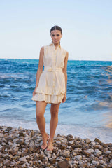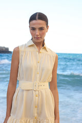 Best summer moments envisioned into a dress, with the softest shade of yellow. Keeping elements classic, this dress is tailored with gathered details at the shoulders and balanced with the right amount of ruffles. Slip on some sandals and camouflage with the sunshine! Made from 100% viscose for comfort and breathability.