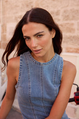 Denim that feels like a dream. Marking our first foray into denim, this dress is crafted in a comfortable stretch denim fabric, made to fit like a gentle cuddle. Tailored with elongating seaming details ending with a front slit, feel confident in every step you take. Made from 97% Cotton and 3% Spandex for comfort and shape retention.